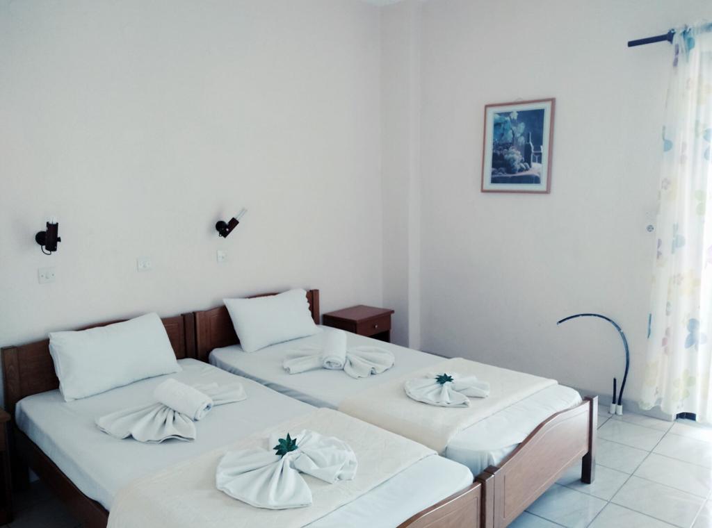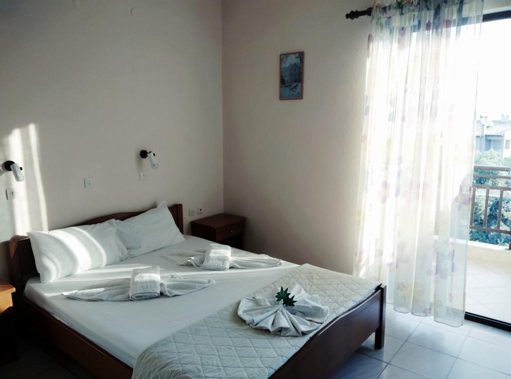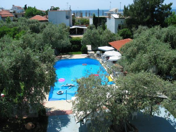 Vila Vranas 2, cladirea Giannoula, este situată în Skala Sotiros, în mijlocul unei păduri de măslini, la aproximativ 200 m de centrul stațiunii. Distanța față de plajă este de aproximativ 100 m. Plaja publică este micuţă, cu nisip fin, intrarea în mare este lină(bar pe plajă, contra cost).