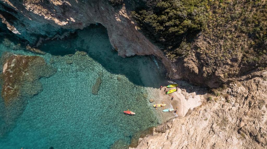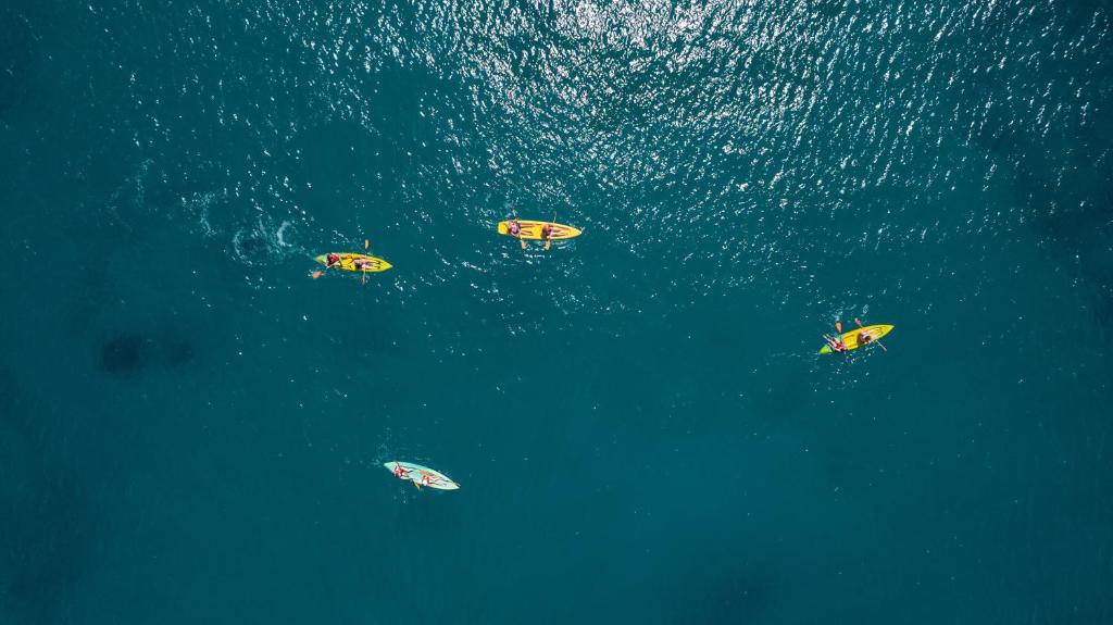Micul dejun, pranzul și cina sunt servite la restaurantul cu vedere la mare și la munte. Băuturile și cafeaua sunt servite la barul principal și la barul de la piscină. Activitățile includ un mini-spa, tenis și o plajă.