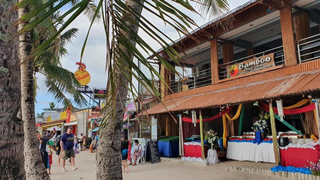 Bamboo Beach Resort & Restaurant se află la 10 minute de mers pe jos de D'Mall. La 15 minute de mers cu mașina se află Portul Boracay Jetty, care se află la 20 de minute cu barca de Portul Caticlan Jetty. Aeroportul Internațional Kalibo este la aproximativ 2 ore de mers cu mașina.