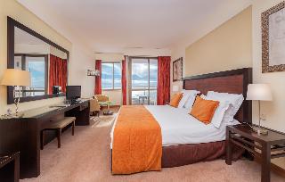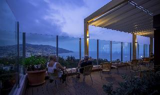 This exclusive hotel is located in quiet surroundings, offering panoramic views over the town and only 200 m from the sea as well as just 2 km from the centre. Various shopping facilities, restaurants and bars (each around 100 m away), as well as links to the public transport network (50 m) can be found in the vicinity. The well-known Lido, (sea swimming pool) as well as the nearest nightclub can be reached within 15 minutes. This hotel comprises a total of 119 doubles and 12 suites spread over 7 floors. A lobby awaits guests with 24-hour reception service, safes and lifts. Facilities include an internet desk, a restaurant and a bar. There are also laundry services, medical assistance and a car park. The comfortably furnished rooms come with an en suite bathroom with hairdryer, a direct dial telephone, satellite/cable TV with VOD, a minibar, a king-sized bed, a safe, coffee and tea facilities a balcony and central heating. The well-kept outdoor complex is home to a swimming pool, snack bar, sun loungers and parasols. Additionally, the hotel offers a sauna, a gym and a massage services (additional charges apply). A seasonal evening entertainment programme with dance, live international shows and live music provide amusement for guests. Breakfast is offered to guests in the mornings and can be selected from a buffet. The midday may be chosen from a menu and evening meal is a Buffet Themed party with live cocking station . Special dietary requirements as well as individual dishes may be prepared on request.