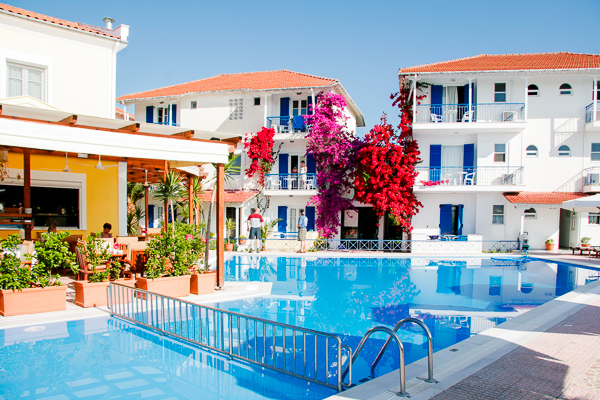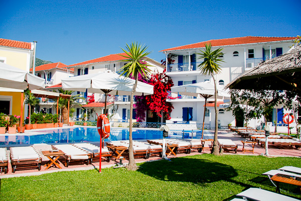 Hotelul G. George este situat in Nidri la numai 200 m fata de plaja. Atmosfera pasnica de aici, vederea uimitoare asupra zonei montane din apropiere si a insulelor mici Scorpioni, Madouri, Sparti si Scorpidi, dar si plajele, centrul comercial local si viata de noapte atrag in fiecare an mii de turisti din toate colturile lumii.