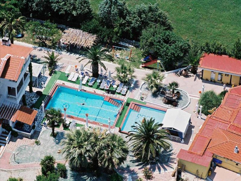 Intr-o frumoasa zona verde la marginea marii Egee, la 2 km de statiunea Kriopigi si cam 85 de km fata de aeroportul "Makedonia" din Salonic.