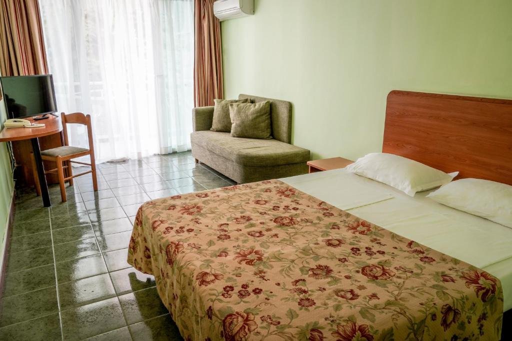 aprox - 18 mp. Camerele Standard au paturi twin (2 paturi single) sau duble si o canapea (neextensibila 70/170). Toate camerele sunt dotate cu aer conditionat si confortabil dotate cu baie proprie si dus, telefon, TV cu programe prin cablu. Toate camerele au balcoane, unele dintre ele cu vedere la mare. Capacitatea maxima este de 3 adulti.