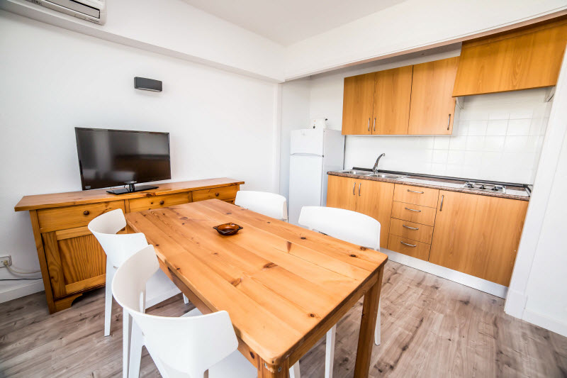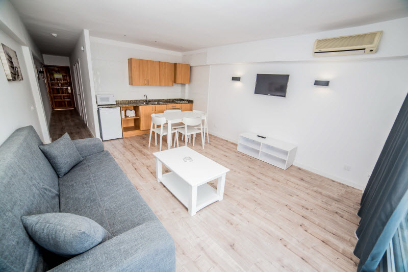 The complex was renovated in 2009 and offers 119 rooms in total, spread across 6 floors in the main building and 7 floors in the annexe. These 2 large blocks are connected to one another by an outdoor lift. The lift also provides access to the swimming pools, the gardens and the pool bar. The apartments enjoy views of Santa Ponsa beach. Other amenities include air conditioning, a lobby, 24-hour reception service, a hotel safe and currency exchange facilities. A terrace, café, TV room, conference facilities, WLAN Internet access and a bicycle hire service also feature. Parking facilities in the form of a car park are provided for guests arriving by car..This apartment hotel is situated just across the road from the sandy beach, which is directly and immediately accessible on foot. Links to public transport can be found in the immediate vicinity. The establishment has the advantage of being quiet and peaceful while at the same time being close to the city. It is only approximately 15 km from Palma de Mallorca, while the airport is about 20 km away..Each apartment comes with a bathroom with bath, as well as a kitchen with fridge, cooker and microwave. A TV, safe, air conditioning, a balcony and a terrace also feature..Guests may take advantage of the outdoor pool with childrens pool and pool bar, as well as the sun terrace with sun loungers and parasols. A massage treatment service, a gym, table tennis and pool/snooker also feature. The nearest golf course is approximately 2 km away. Sun loungers and parasols are provided on the beach.