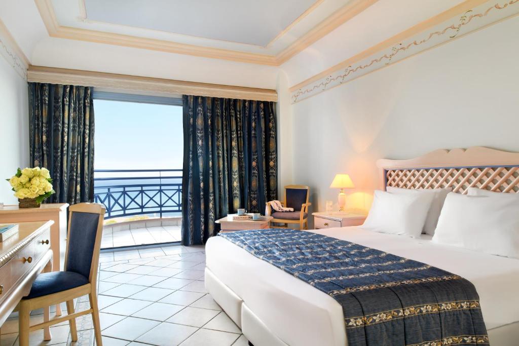 Complexul pune la dispozitia oaspetilor urmatoarele facilitati si servicii precum: 3 piscine cu apa sarata, tobogane cu apa si facilitati pentru copii, 6 restaurante, meniuri cu diete speciale (la cerere), 5 baruri si o gelaterie care serveste si clatite, acces imediat la plaja, terasa la soare, gradina, internet wireless disponibil gratuit in zonele publice, posibila parcare publica gratuita la proprietate, serviciu de concierge, camera de bagaje, schimb valutar, receptie deschisa nonstop, mini-market propriu, lounge/ camera cu TV comuna, aer conditionat, magazine (in unitatea de cazare), inchirieri auto, pranz la pachet, camere izolate fonic, magazin de suveniruri/cadouri, seif (cost suplimentar), lift, personal multilingv (greaca, engleza standard, franceza, rusa, germana).