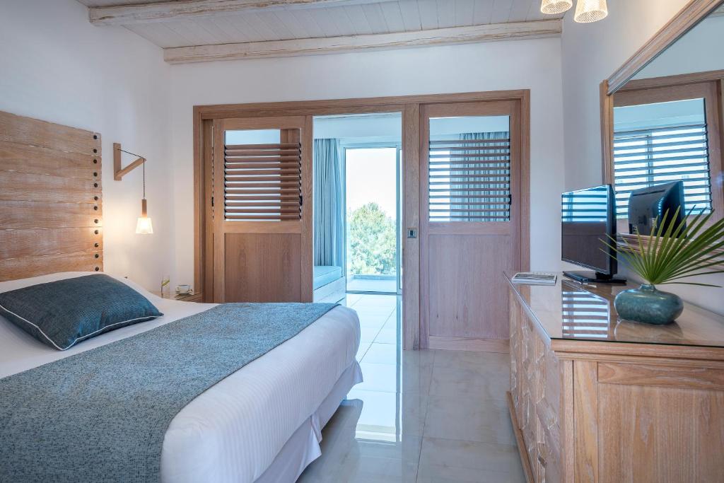 Mitsis Rodos dispune de camere luminoase si spatioase dotate cu aer conditionat, terasa sau balcon privat cu deschidere la gradina si piscina sau cu vedere la mare, mobilier de culoare deschisa, pardoseli racoritoare cu gresie, draperii si tesaturi colorate, minifrigider, TV prin satelit cu canale de muzica, baie privata, uscator de par, telefon direct, seif (contra cost).